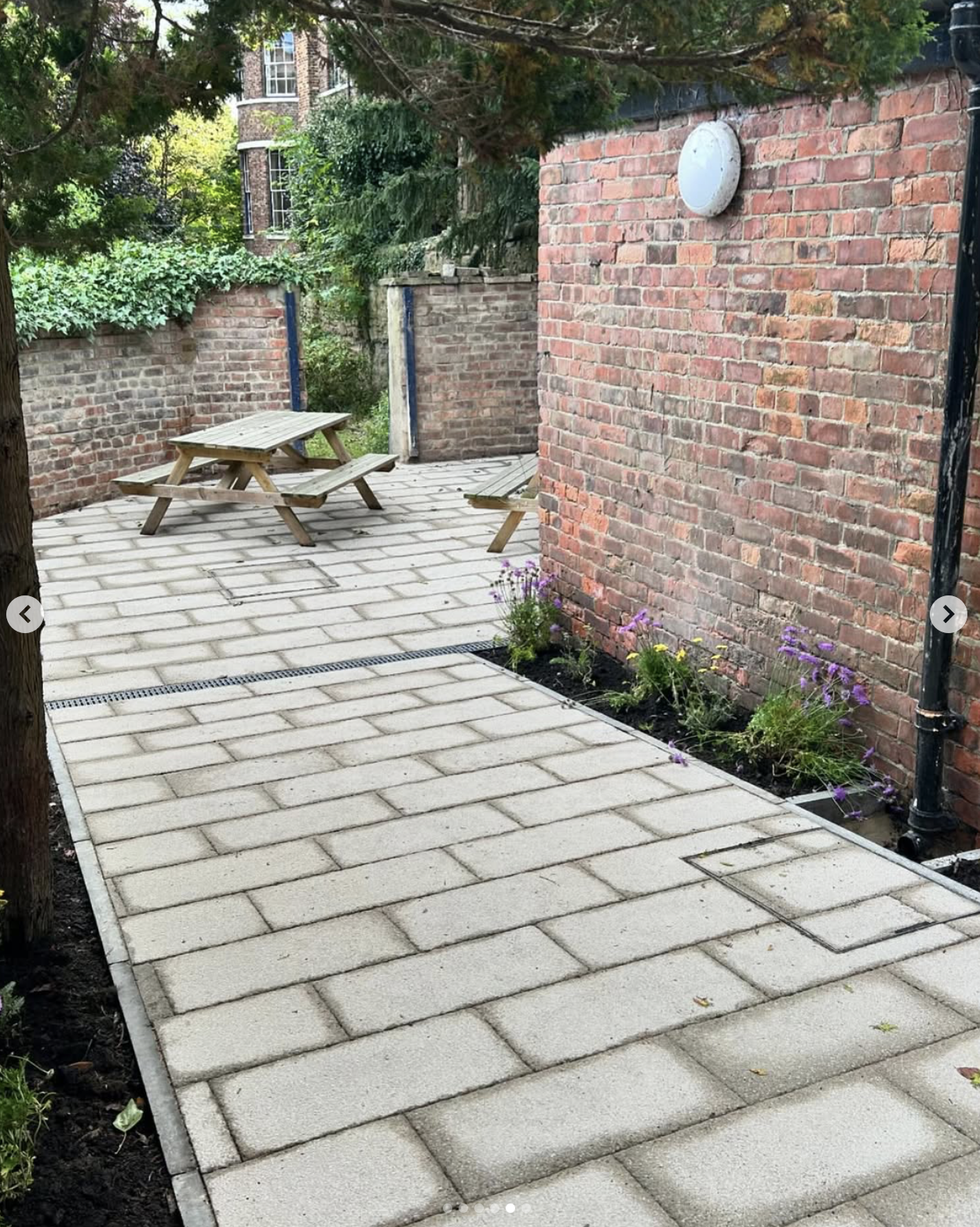 Photo of the MCR Cottage courtyard from the @hatfieldcollege Instagram.